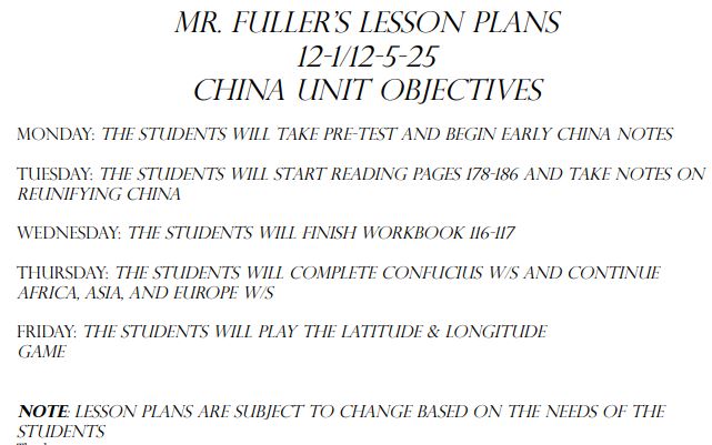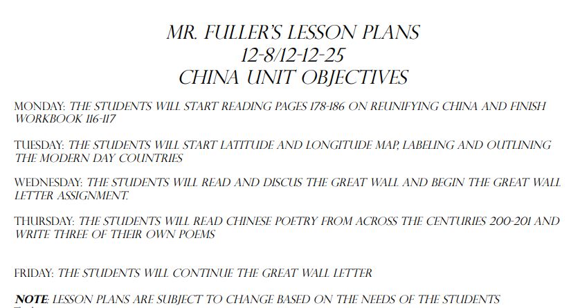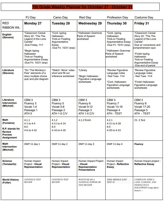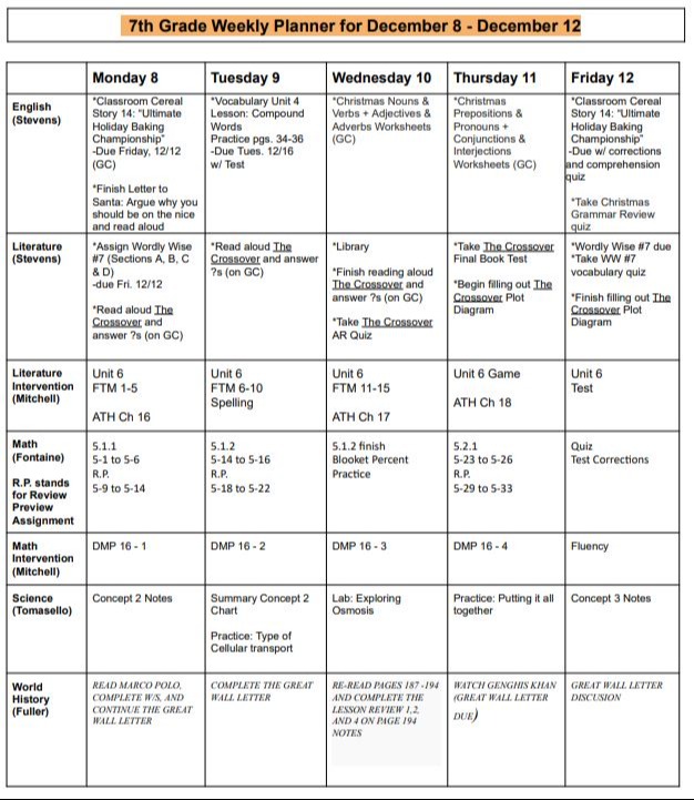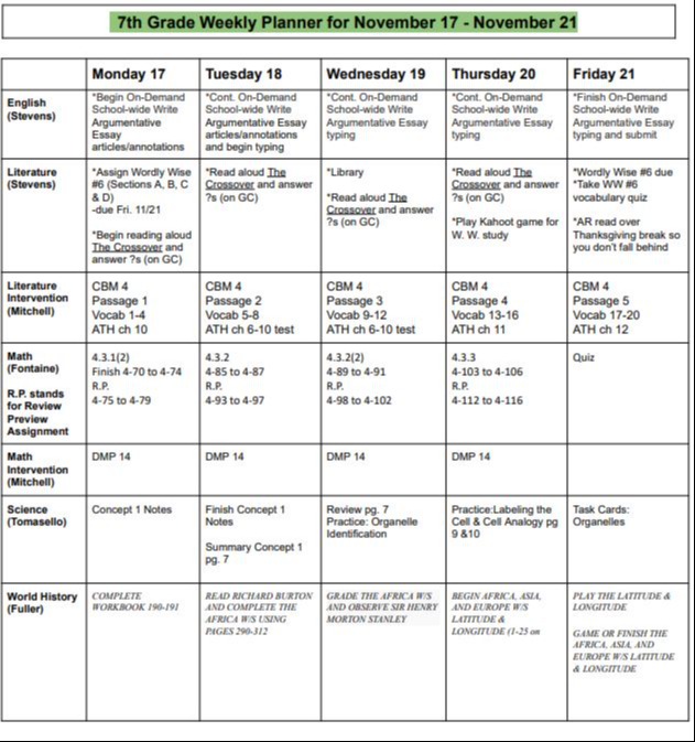 Please Note: Literature and English work will be posted in your students' Google Classrooms