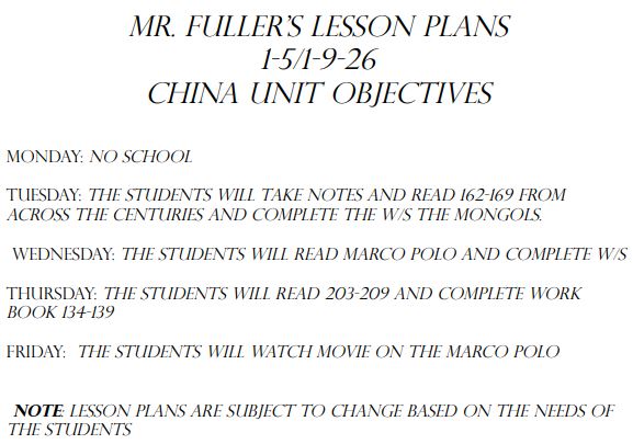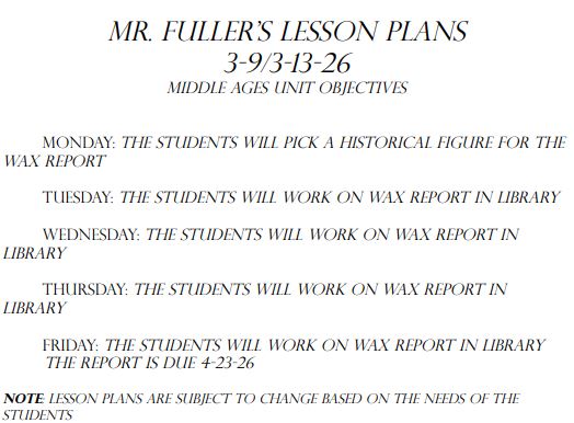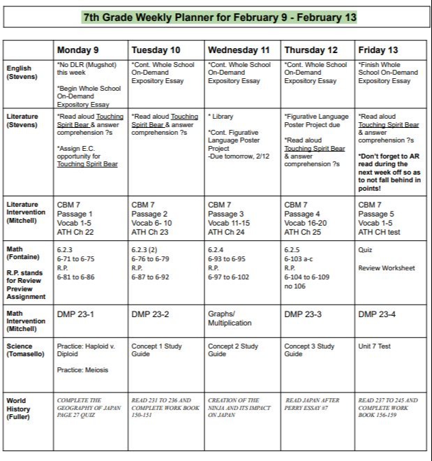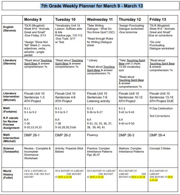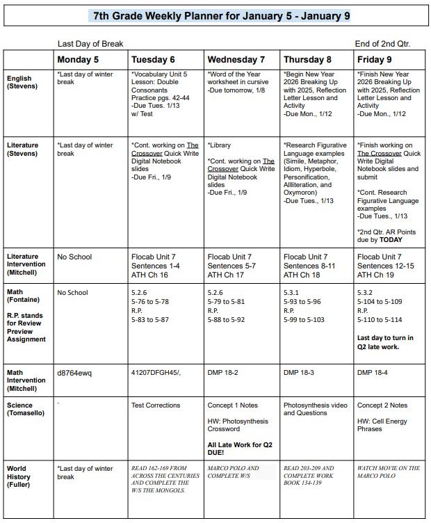 Welcome to the 7th Grade Classwork and Information Page