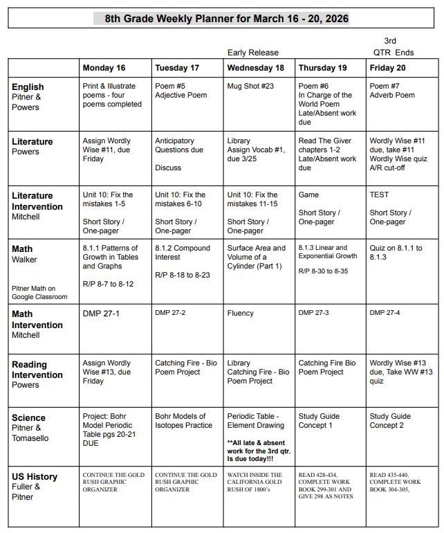 Amber Pitner - Multi Subject - Email amber.pitner@cwusd.net