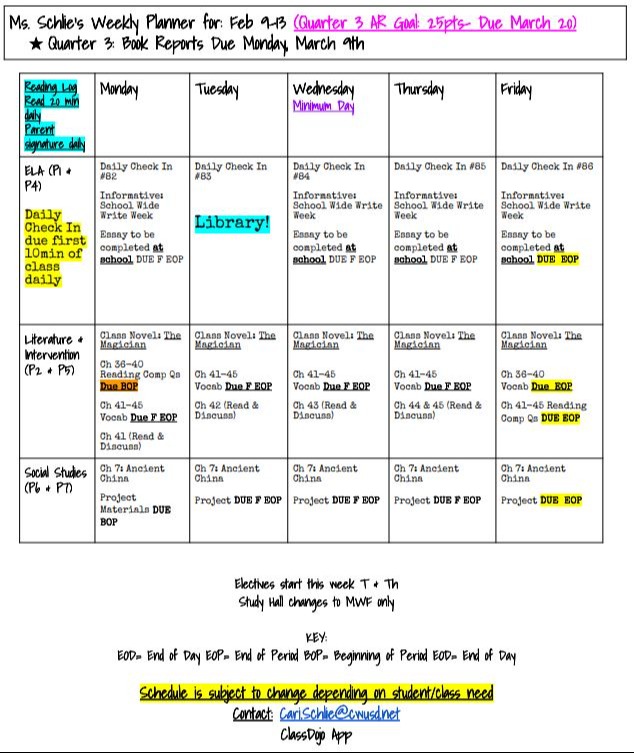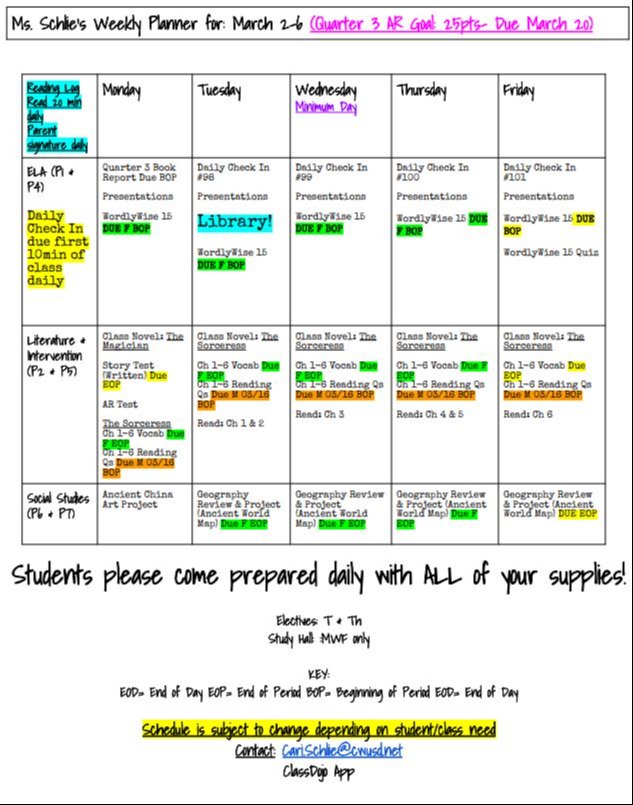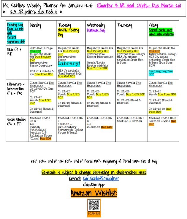 Welcome to Ms. Schlie's 6th Grade Class