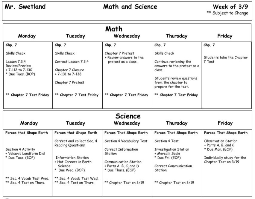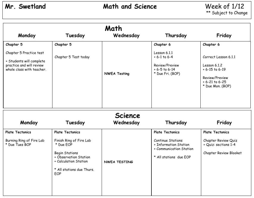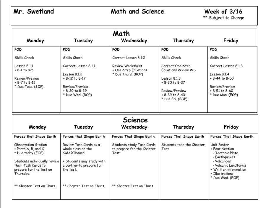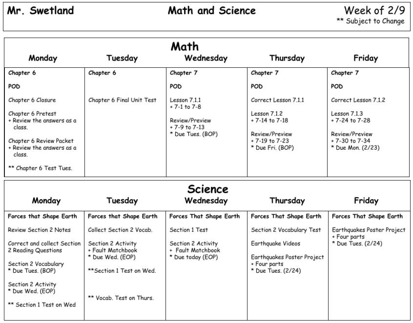 Welcome to Mr.Swetland's 6th Grade Class