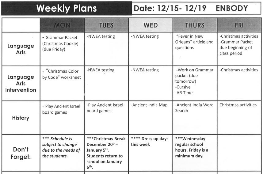 Welcome to Mrs. Enbody's 6th Grade Class
