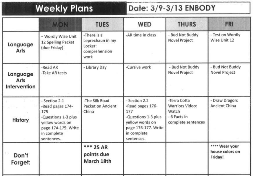 Week 3/9-3/13 Assignments